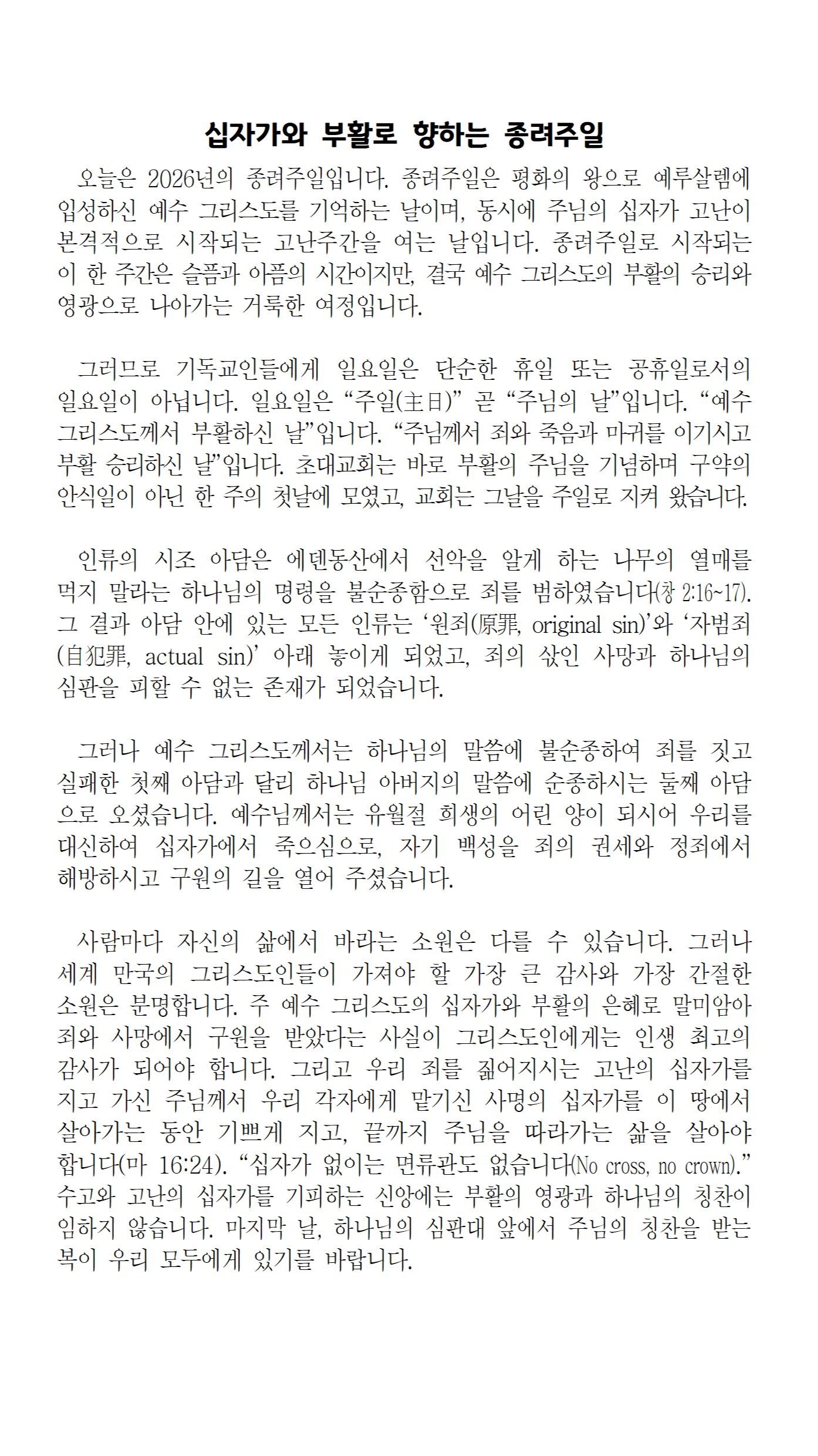 2026년 3월 29일(주일) 주보