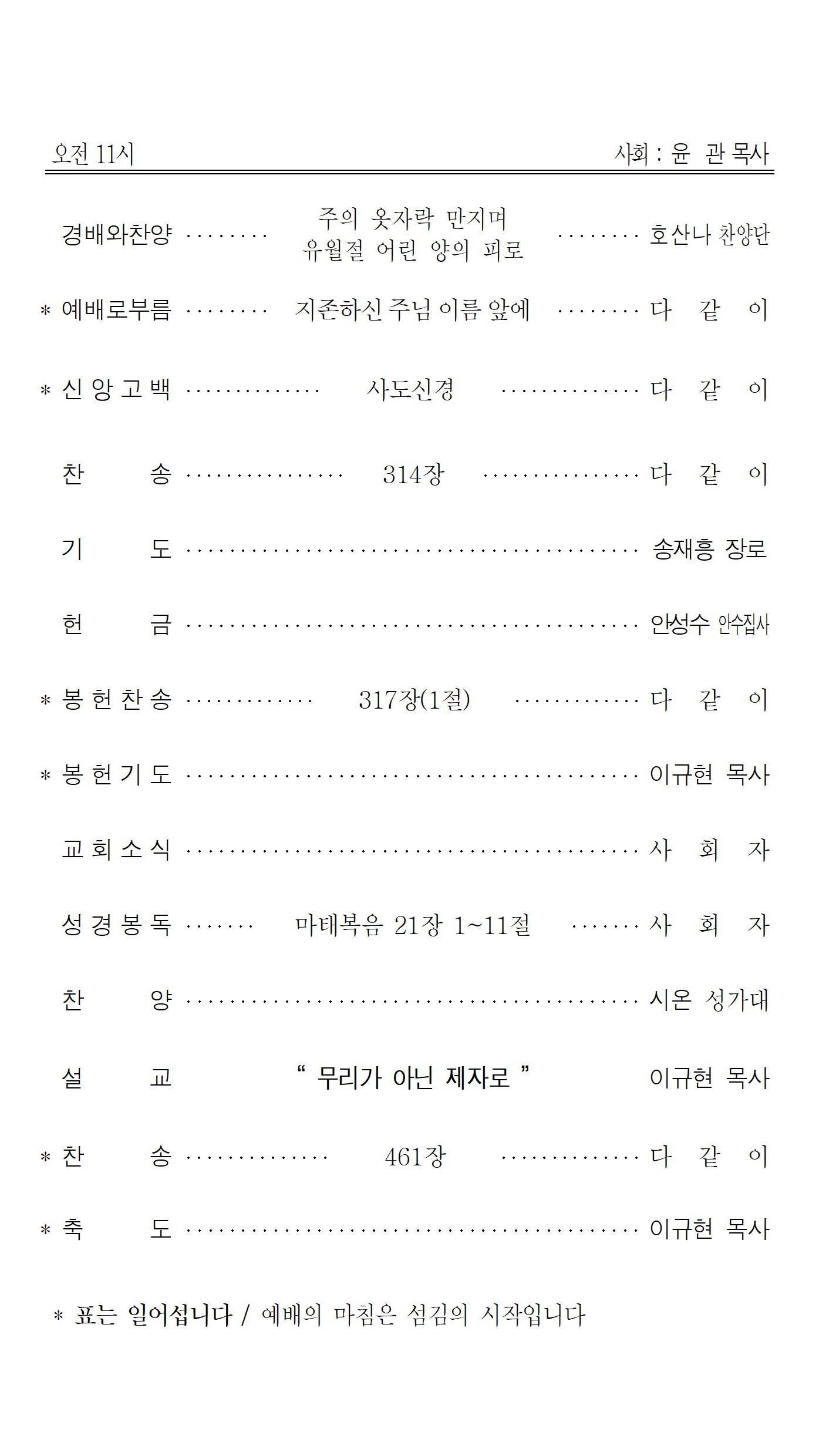 주일예배순서