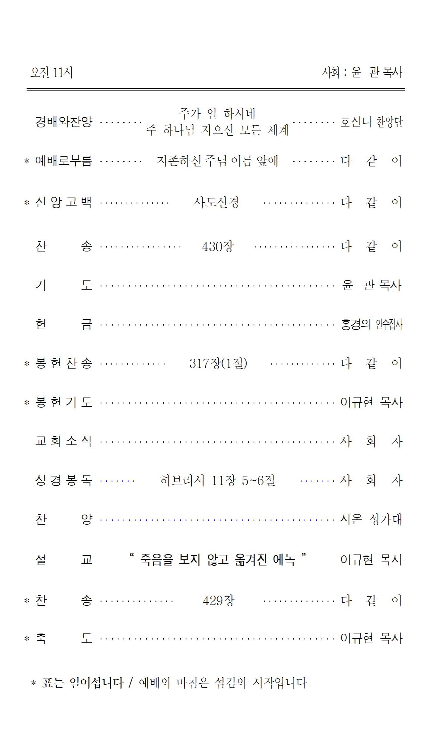 주일예배순서